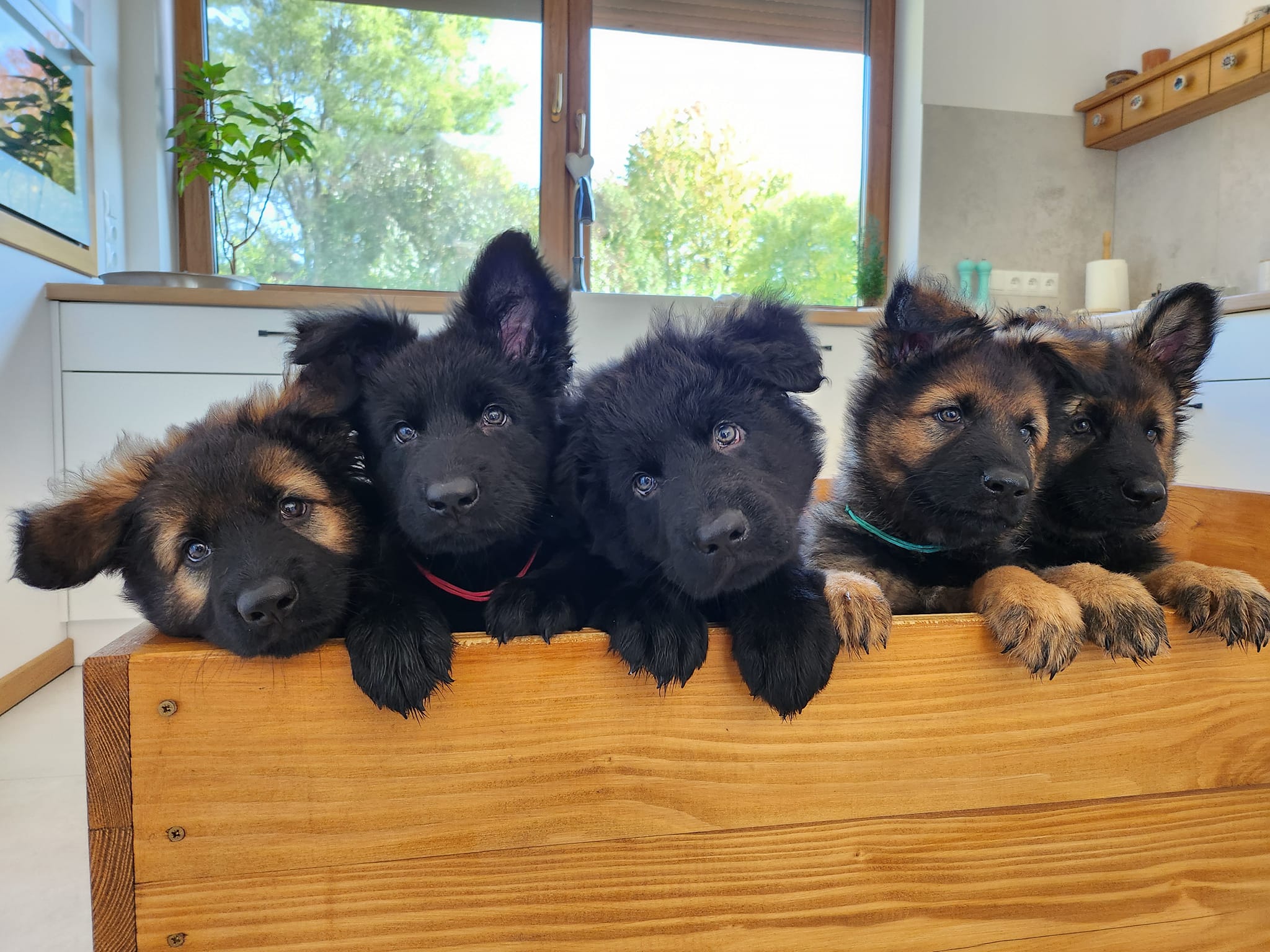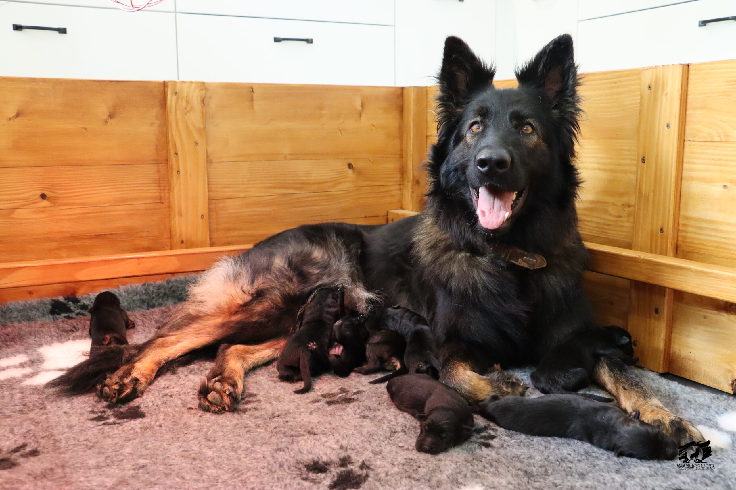 Mamy 7 pięknych maluszków: 4 dziewczynki (1 czarna i 3 wilczaste) oraz 3 chłopców (1 czarny i 2 wilczaste) 😍