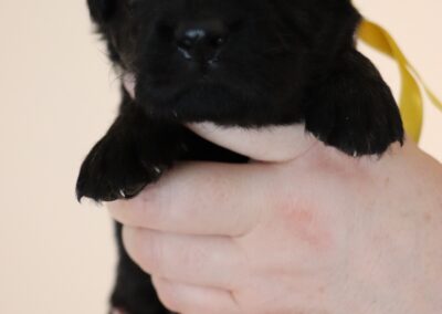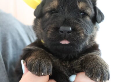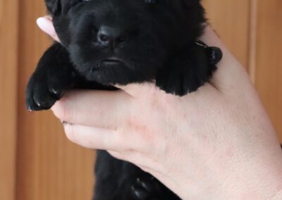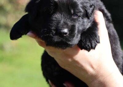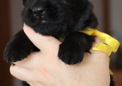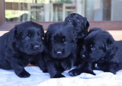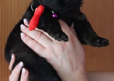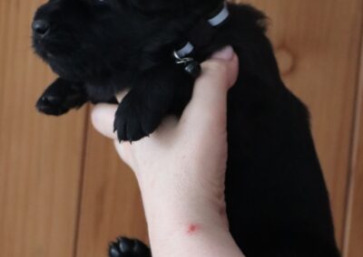 Szczeniaczki mają 26 dni. Pięknie rosną, uwielbiają jeść i bawić się z dziećmi, rodzeństwem i mamą. Są wesołe, odważne i towarzyskie